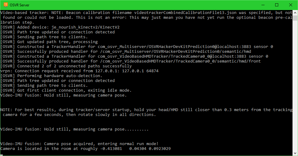 Maintenant vous pouvez lancer le programme osvr_server.exe si ce n’est pas déjà fait et votre casque sera désormais fonctionnel !