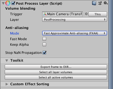 Ajout du PostProcess Layer sur la caméra