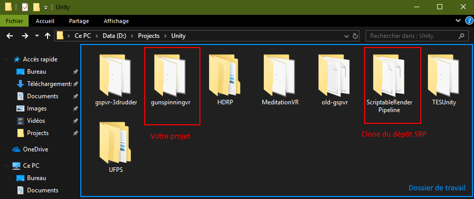 En clonant le dépôt dans votre dossier de travail, tous vos projets peuvent utiliser très facilement la dernière version du Lightweight ou HD Render Pipeline !